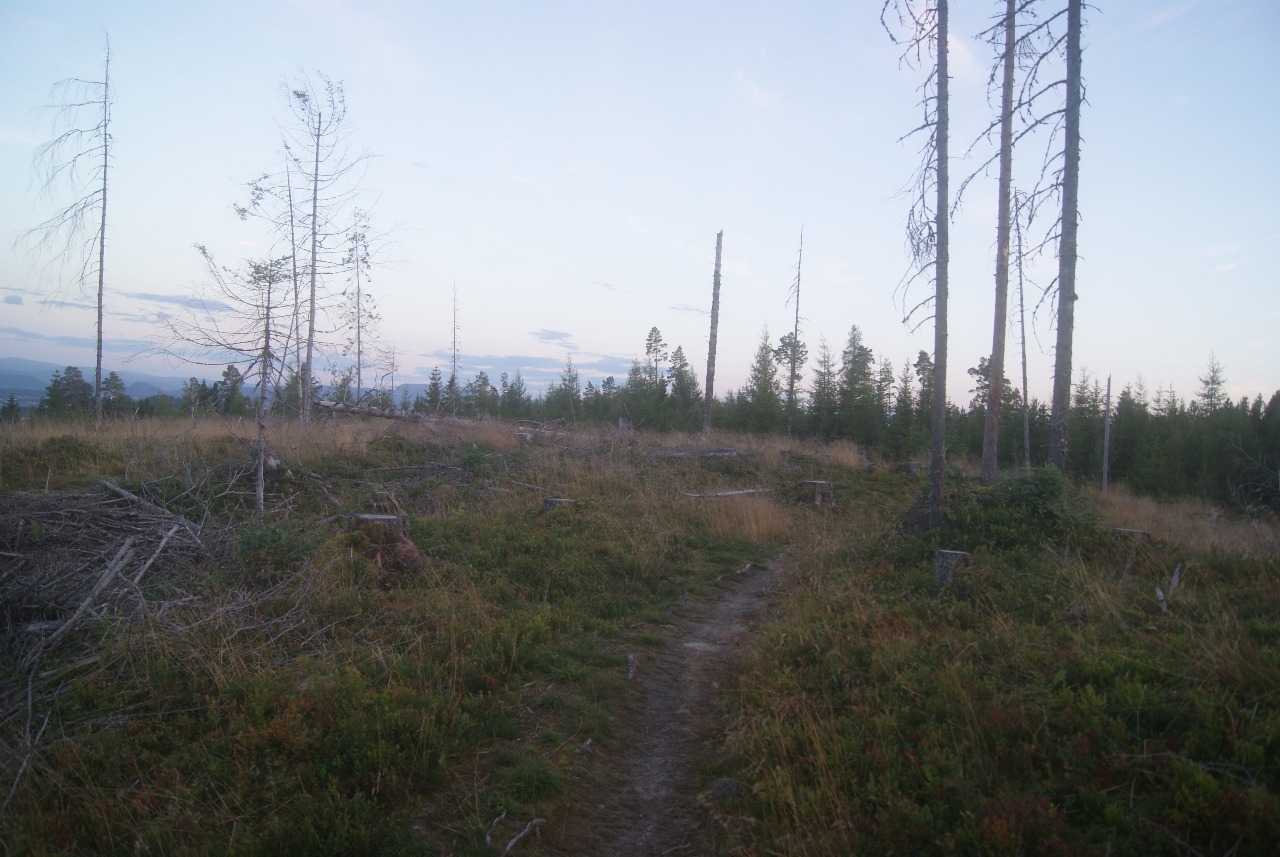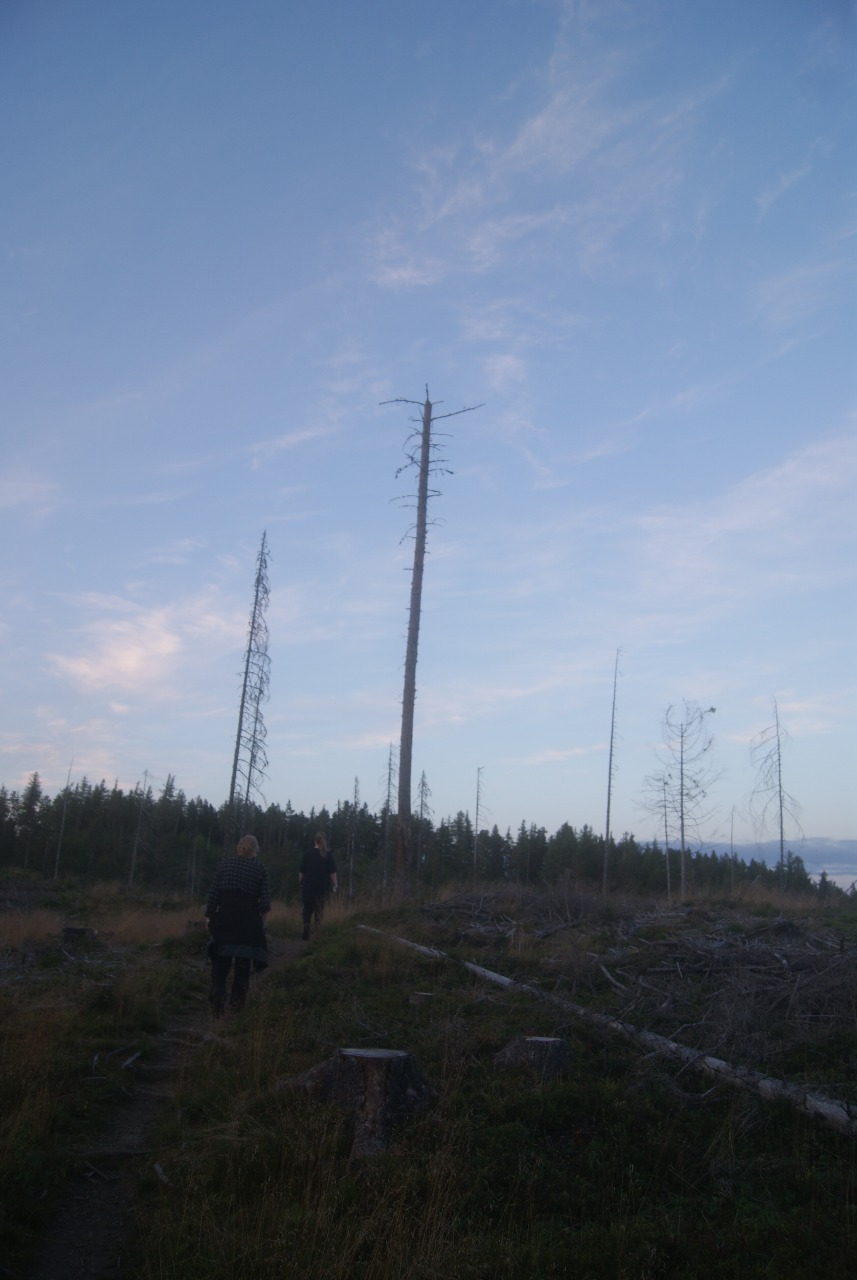 Veien opp og ned fra målet var faktisk overaskende lett..før vi rakk å bli totalt kjørt i beina i motbakker, ble bakken flatet ut ganske ofte og vi slapp å anstrenge oss like mye. Uten leggkramper kunne vi fort nyte omgivelsen og vandre med pusten i behold, slik vi liker. Mye vellkjent skog på alle kanter, men ofte kom det myråpninger og hogstfelt med en utsikt som fikk oss alle til å bare måtte stoppe opp å smile. Flott natur og en fin natursti, med unntak av enkelte steder med bløt gjørme og myrvann. Vanntette sko anbefales for denne turen.