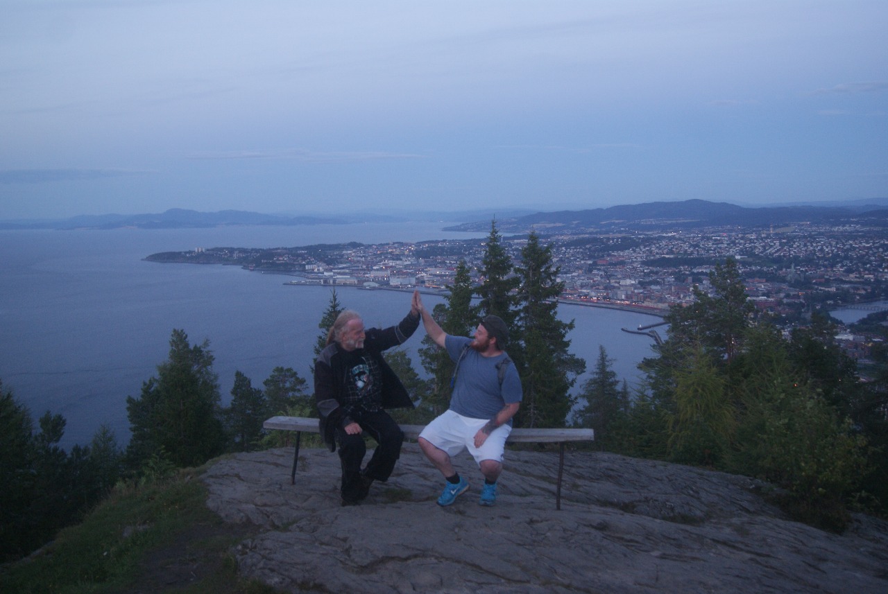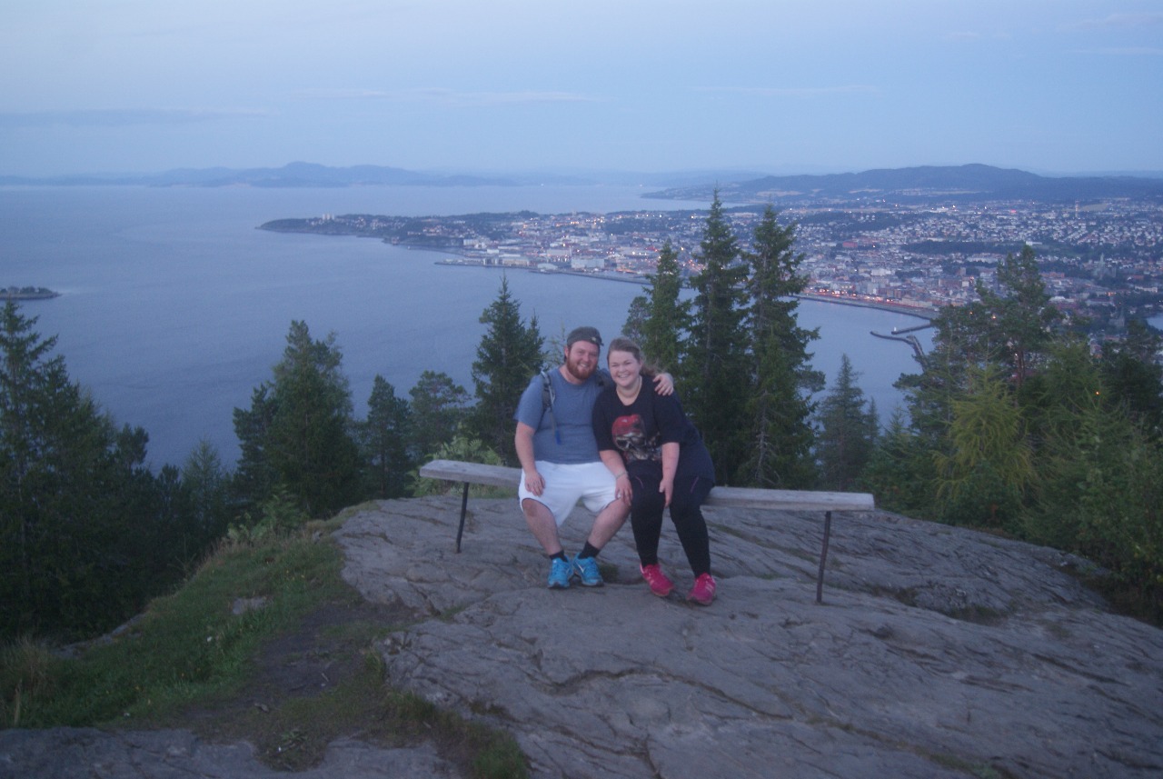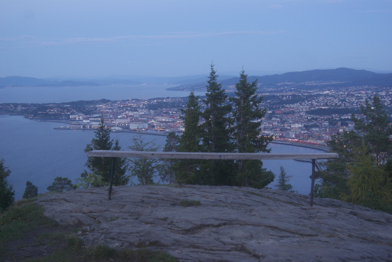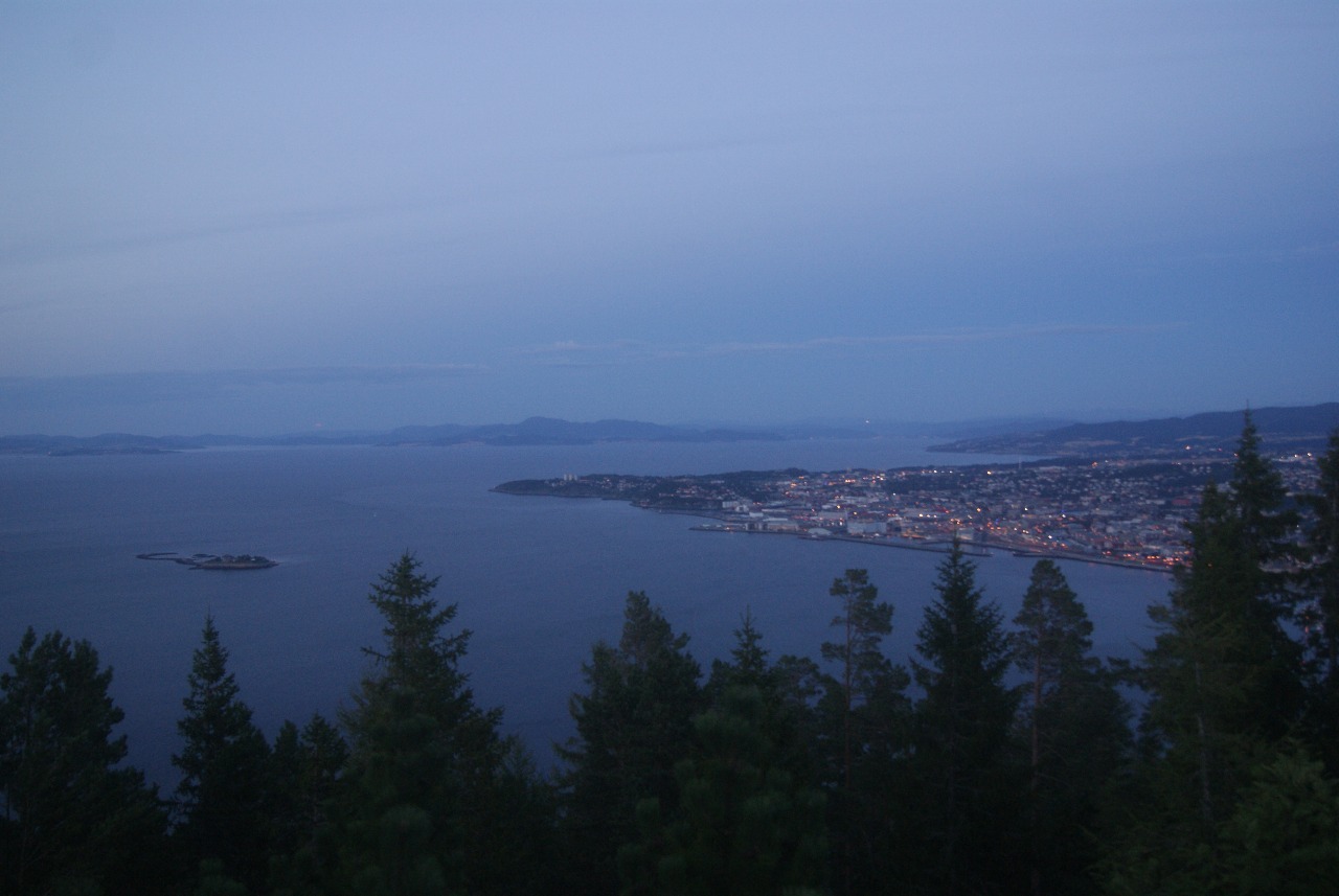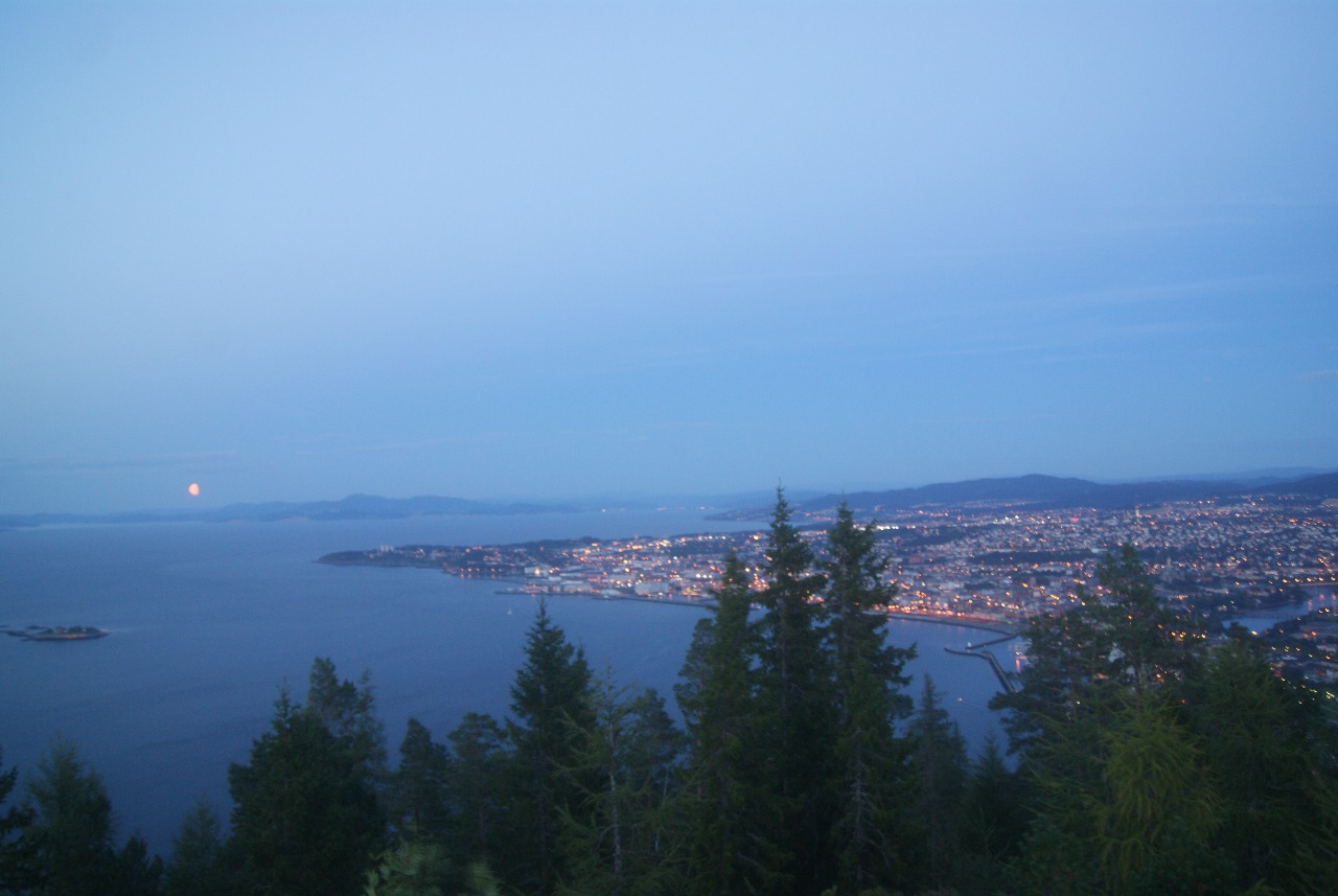 Når vi nådde toppen og kom i mål, mistet vi alle pusten et lite øyeblikk. Utsikten over Trondheim by var fantastisk flott, en mild vind blåste luft under vingene våre, månen viste sitt ansikt og himmelen ble mørkere mens kontrastene av lysene fra byen speilet seg i øynene våre.